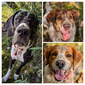 Die Hunde Cody (14) Hundeopi aus Rumänien, Pina (10) eine Epagneul Bretonen Dame aus Sardinien sowie Whoopi (3) eine Deutsche Dogge, geben Michelle unglaublich viel Kraft und Liebe. Ohne die Drei wäre Michelle auch vermutlich nicht da, wo sie jetzt steht, auch weil Whoopi und Pina sie schon physisch beschützt haben.