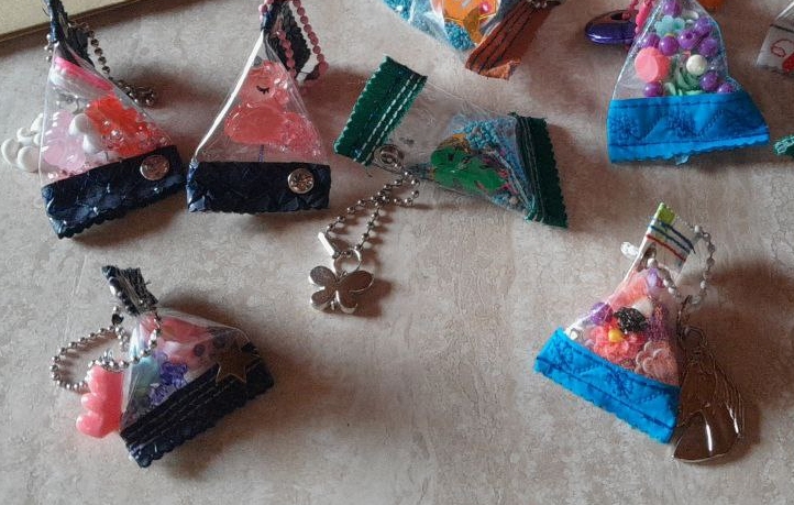 Wir haben Kissen, Bonbon-Shaker, Schlüsselanhänger, Topflappen etc. an zwei örtliche Hilfsorganisationen verschenkt