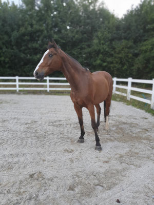 Brauner mit weißer Blesse und einem weißen Hinterbein